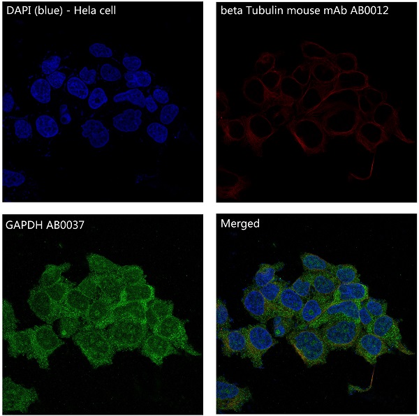 Glyceraldehyde 3 phosphate dehydrogenase (GAPDH) is well known as one of the key enzymes involved in glycolysis. GAPDH is constitutively abundant expressed in almost cell types at high levels, therefore antibodies against GAPDH are useful as loading controls for Western Blotting. Some pathology factors, such as hypoxia and diabetes, increased or decreased GAPDH expression in certain cell types.