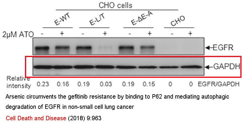Arsenic circumvents the gefitinib resistance by binding to P62 and mediating autophagic degradation of EGFR in non-small cell lung cancer. -Cell Death and Disease